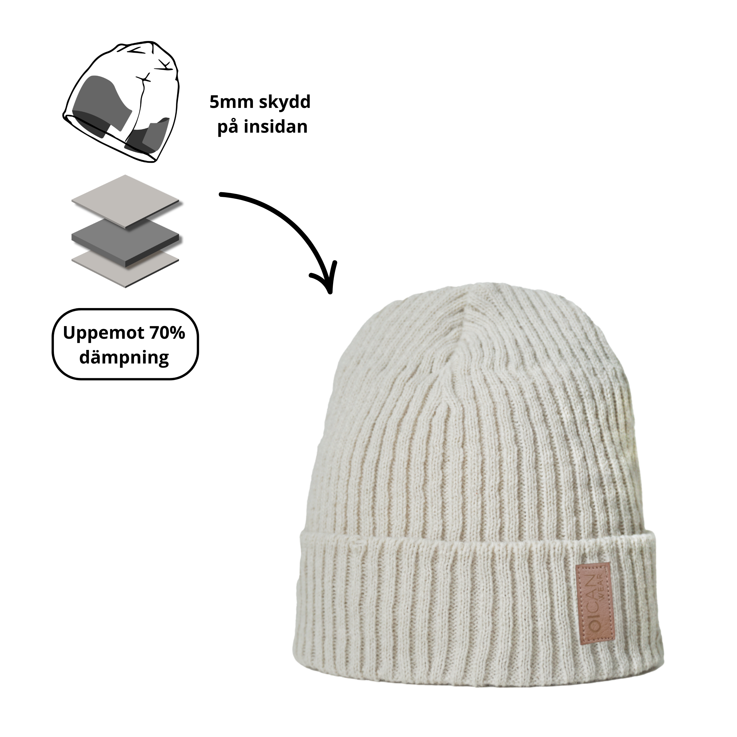 OICAN SafeHat knitted består av 50% ull därför rekommenderas handtvätt. Specifika tvättinstruktioner medföljer varje mössa.