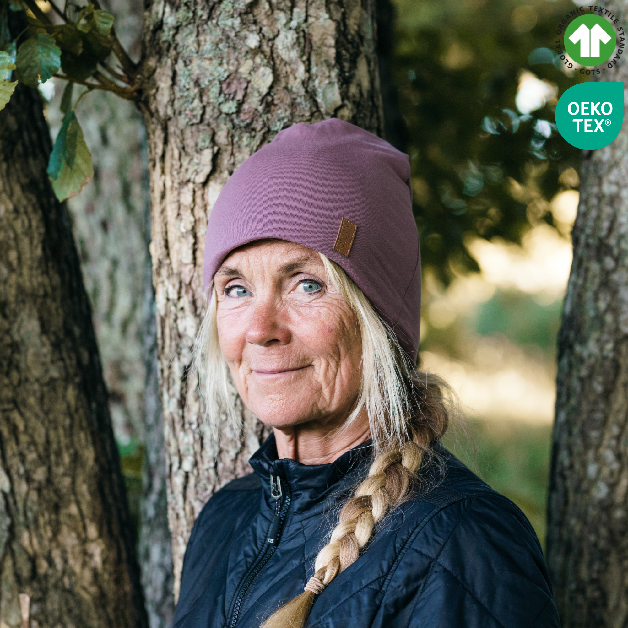 Mössan består av 95% bomull och 5% elastan.