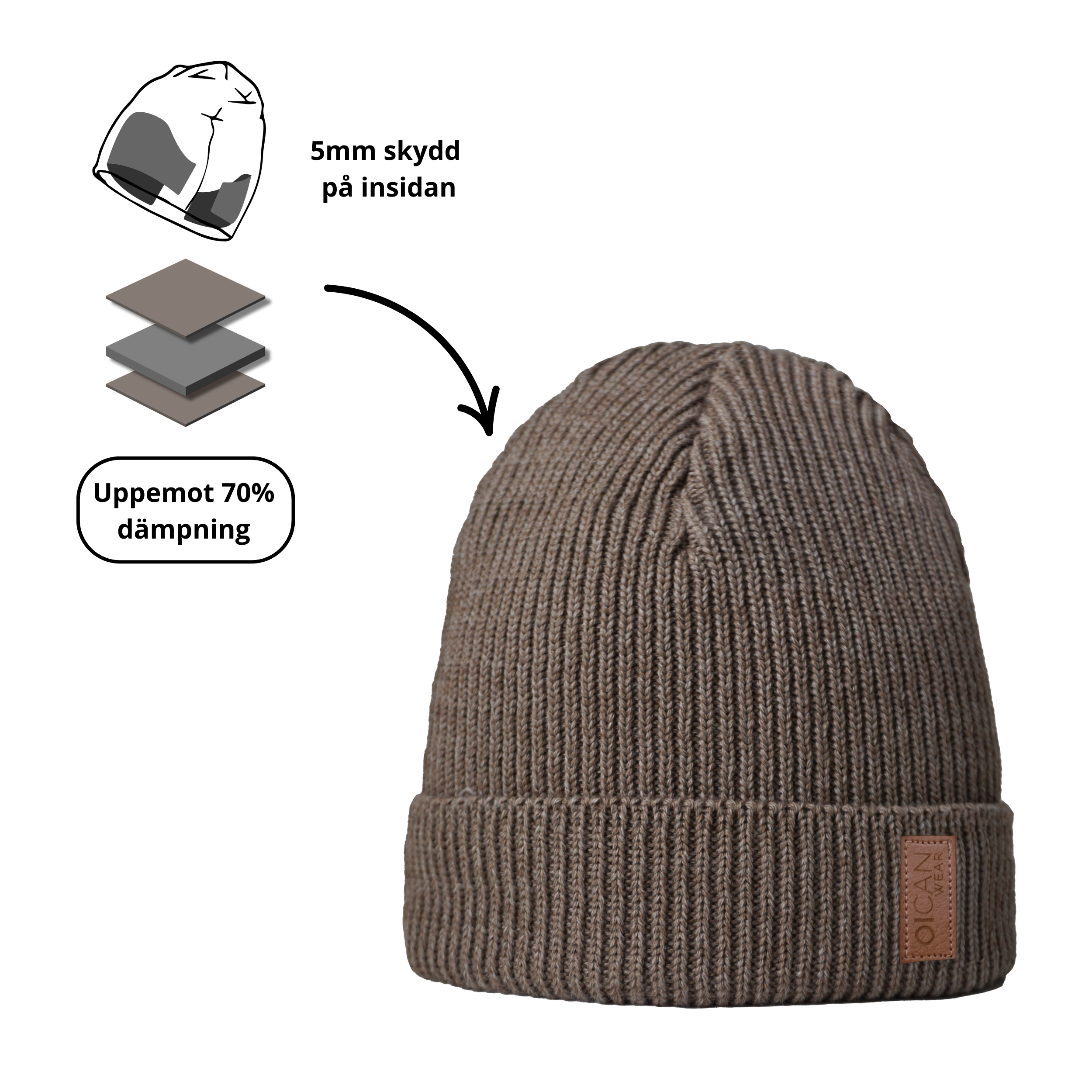 Produkten erbjuder ett dämpande lager för milda huvudstötar under vardagliga aktiviteter. Mössan inte är en ersättning för hjälmar och inte ger skydd mot höga fall eller högintensiva kollisioner. För optimal säkerhet bör OICANs Safe Hat användas tillsammans med noggrann övervakning och inom en säker miljö. Kom ihåg att ingen enskild åtgärd kan garantera fullständigt skydd, och hjälmar bör användas när det är nödvändigt.